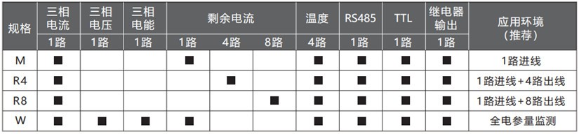 1路三相電流、三相電壓、電能、4路溫度、1路剩余電流